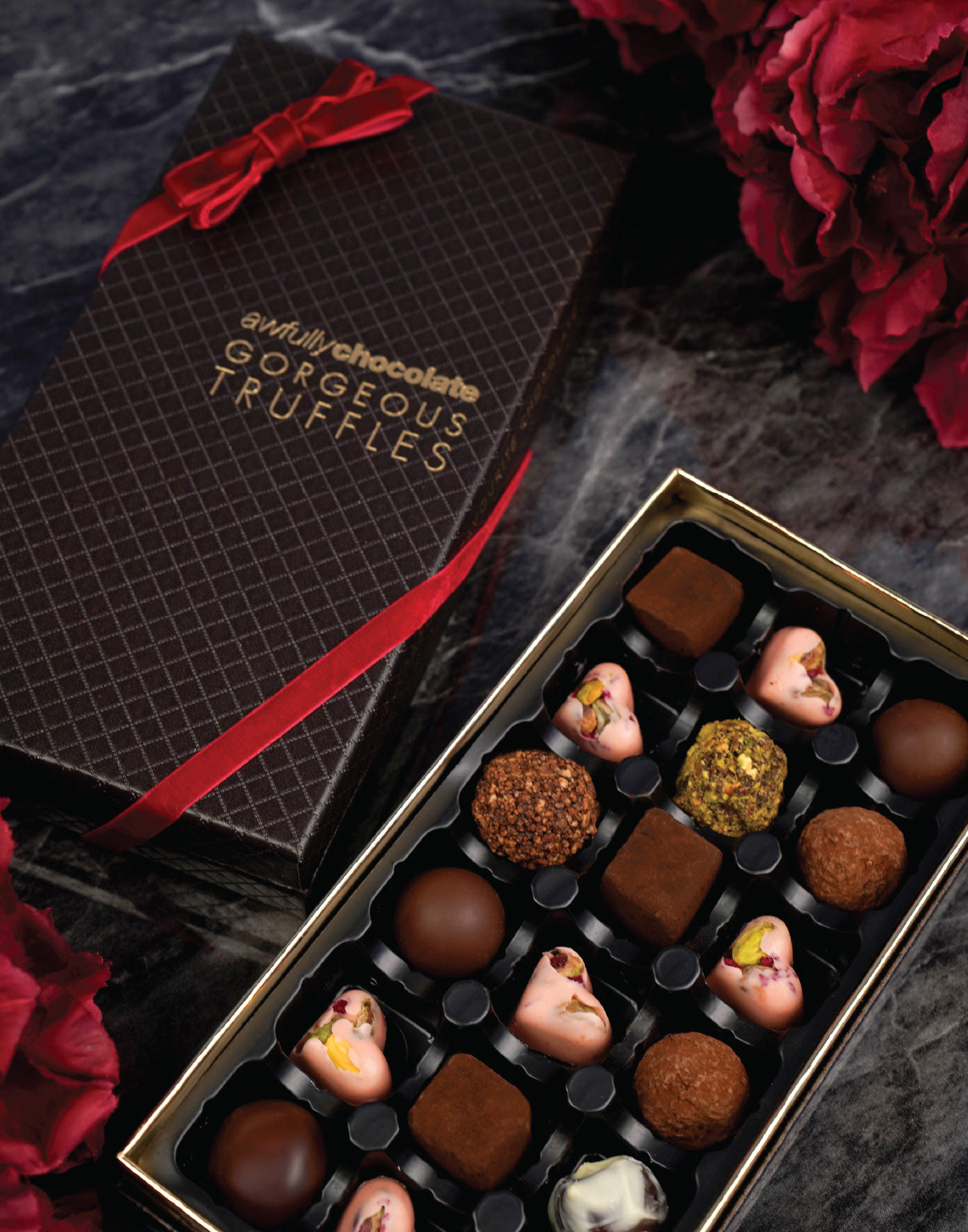 Gift your favourite Gorgeous Truffles with adorable, dainty raspberry pistachio chocolate hearts. Exclusively available only for Valentine's this year!